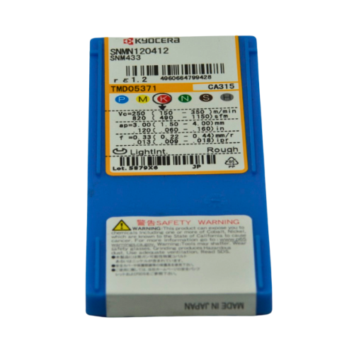 The Kyocera SNMN120412 CA315 is a high-performance negative-type turning insert designed for cast-iron machining applications. As part of Kyocera’s CA3 Series, it features an advanced multi-layer CVD coating with micro-TiCN and α-Al₂O₃ layers that provide excellent wear resistance, high thermal stability, and superior adhesion strength. This makes the CA315 grade ideal for continuous to interrupted cutting of nodular and gray cast iron, delivering stable tool life even under demanding conditions.