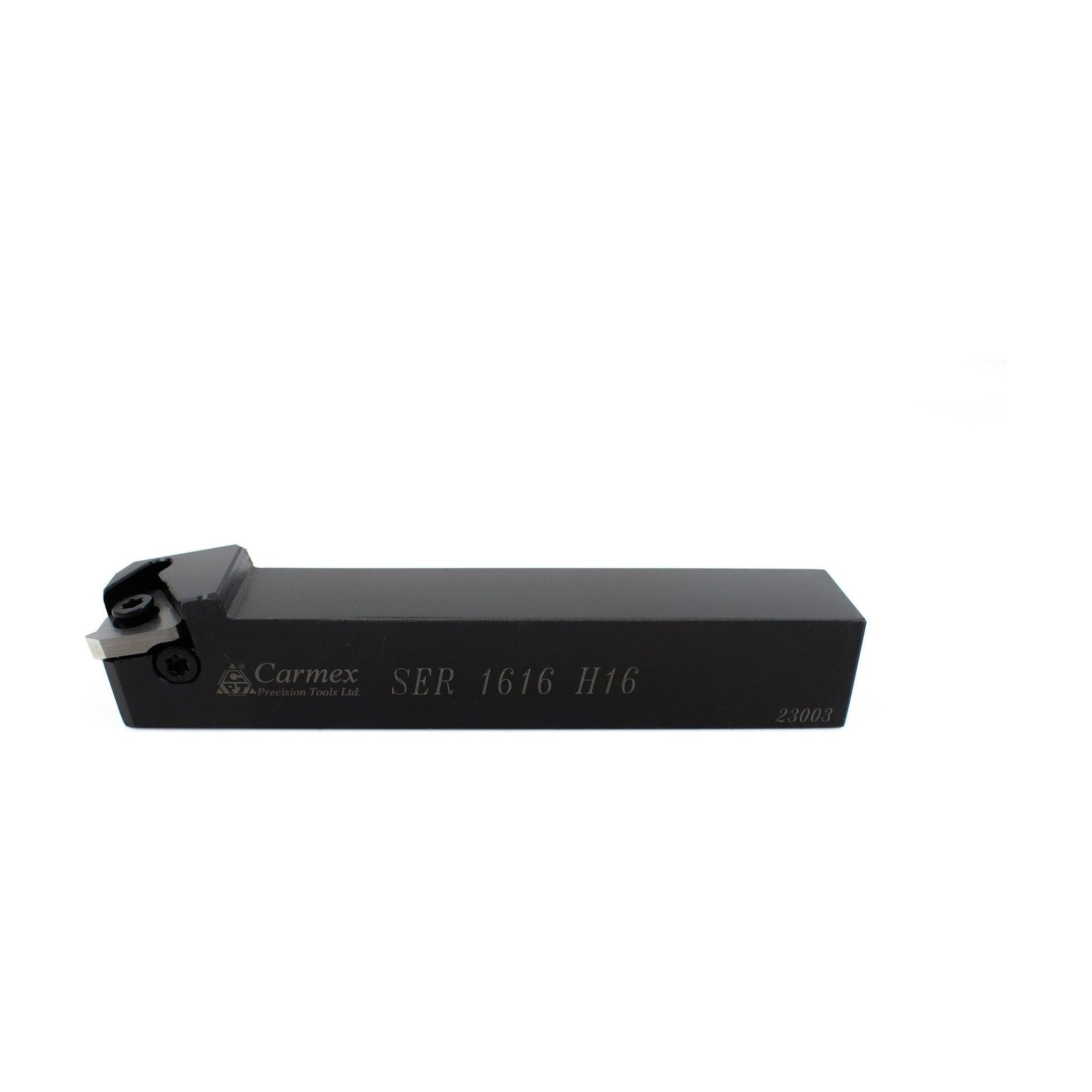 Crafted from hardened alloy steel, the toolholder provides excellent vibration resistance and dimensional stability under heavy cutting conditions. The SER 1616 H16 is fully compatible with standard Carmex 16 mm external threading inserts and anvils, offering easy insert indexing and consistent alignment for precision machining.