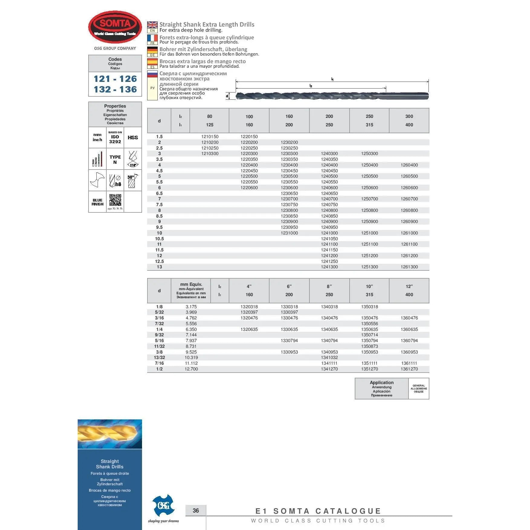 Somta Series 132 – 1/4" HSS Extra Length Straight Shank Drill (Blu, 160 mm OAL) | 1320635 The SOMTA 1320635 is a high-quality imperial extra-length drill designed for extended-reach and...