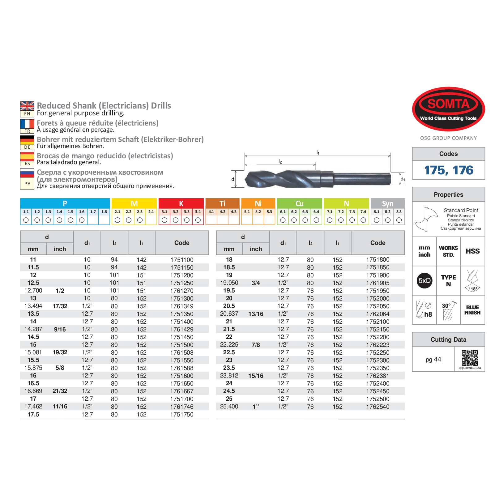 p>Somta Series 176 – 15/16" HSS Reduced Shank Drill | 1762381
